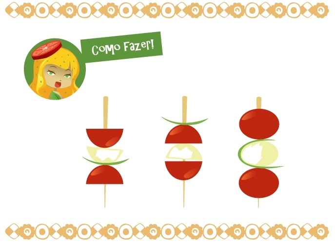Você pode usar a imaginação na hora de intercalar os ingredientes da salada no palito.