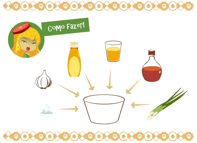 Misture todos os ingredientes para o molho em uma tigela e reserve.